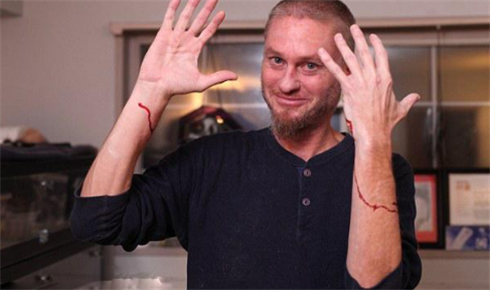 37歲的蒂姆-弗雷德為了證明自己的蛇毒免疫理論,最近正用世界上最毒的兩條蛇在自己身上試驗,連續(xù)讓太攀毒蛇和黑曼巴蛇咬自己。而這兩種毒蛇的毒液分分鐘可以致命。