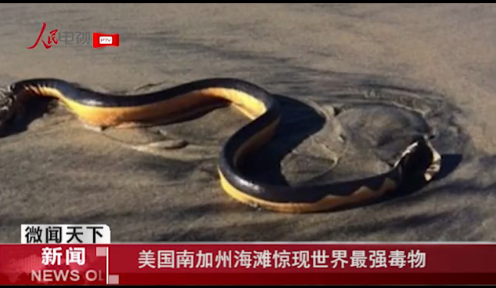 美國南加州海灘驚現(xiàn)黃腹海蛇 毒液是眼鏡蛇10倍視頻